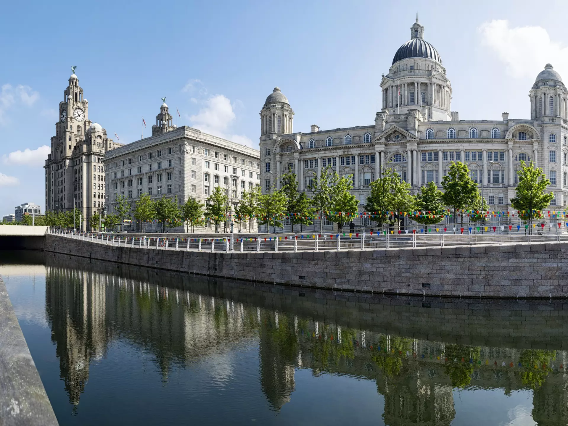 Three landmarks on Liverpool's waterfront Pier Head are collectively known as the Three Graces and act as emblems of the city as a whole: the Royal Liver Building, the Cunard Building and the Port of Liverpool Building.