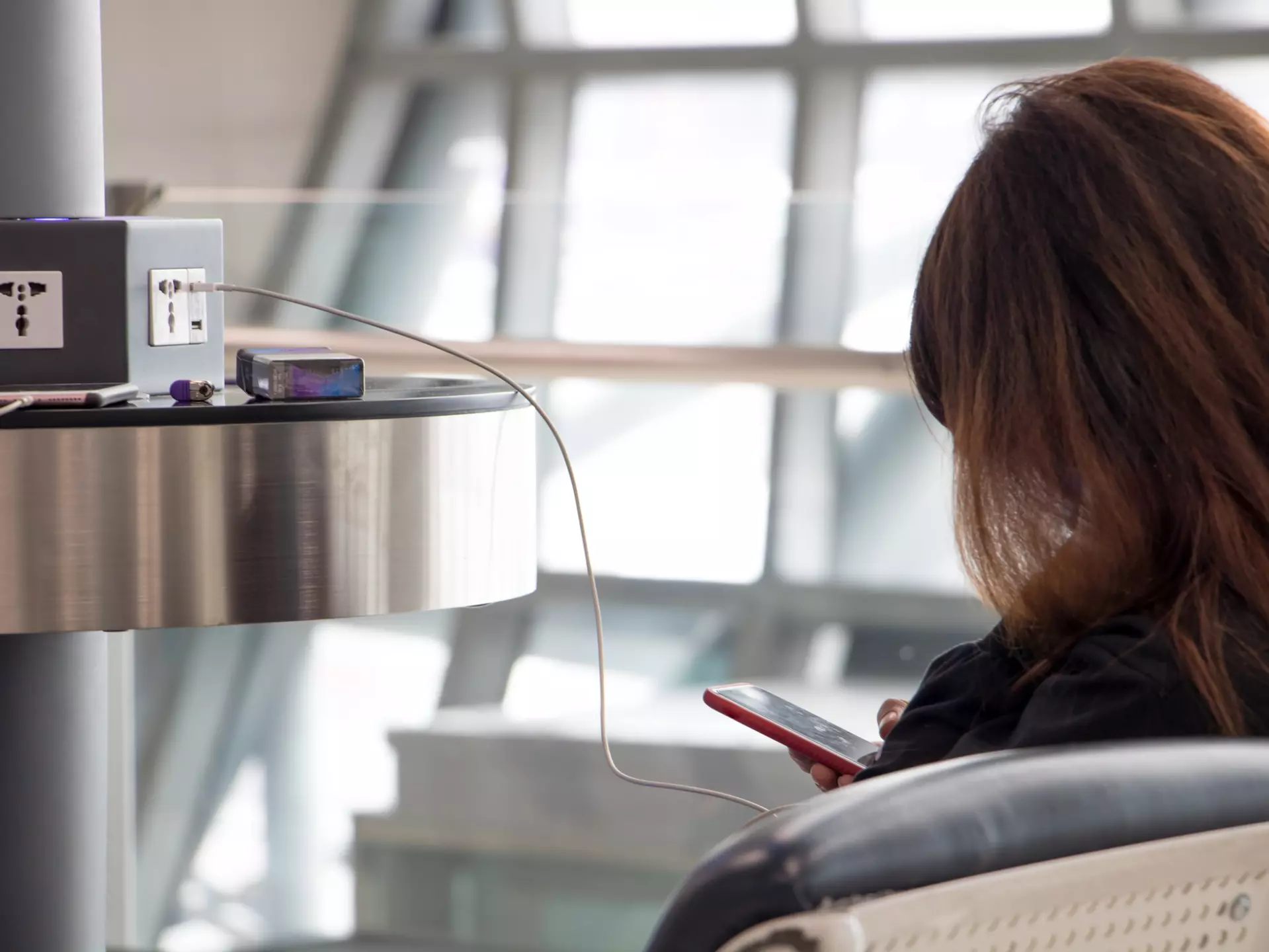 Many travelers are in search of two things upon reaching their airport gate: 1. A coveted waiting area seat, and 2. A place to plug in their phone for a last-minute charge. You should reconsider the second.