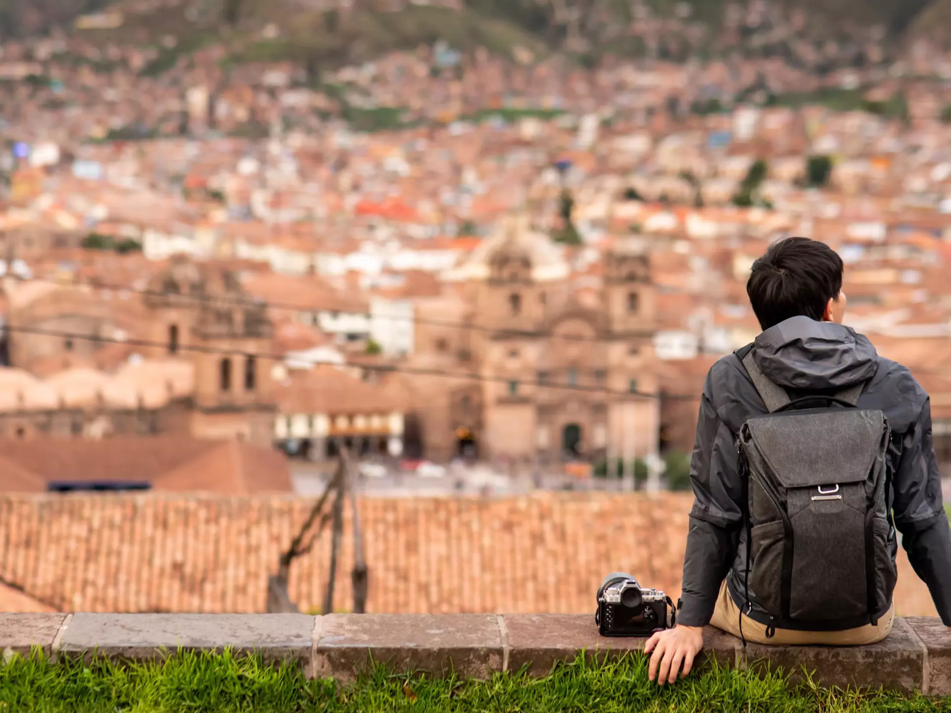 Tourist and photograpaher sitting on viewpoint looking at Cusco city. Zephyr18 / Getty Images